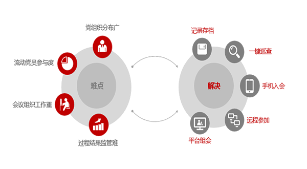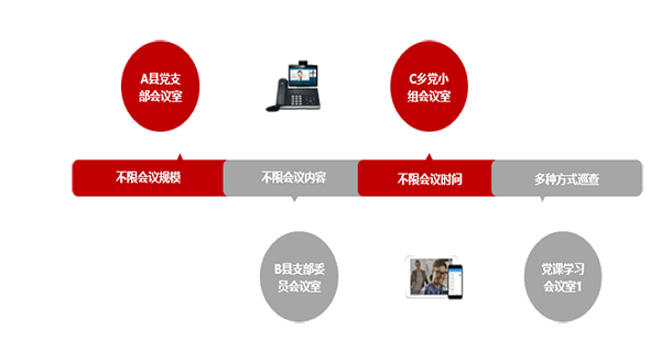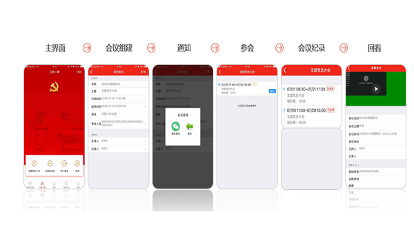 党建应用平台调度视频会议,事先会议预约,通过同步通讯录批量选择参会人员,设置时间地点,通过APP、短信、微信等方式发布会议,通知下发到每个参会人员,会议开始前5分钟提醒,会议一到一键入会,会议过程中还可会议管理、会议录制。会议结束后,可将会议内容存储,后期还可重复学习。