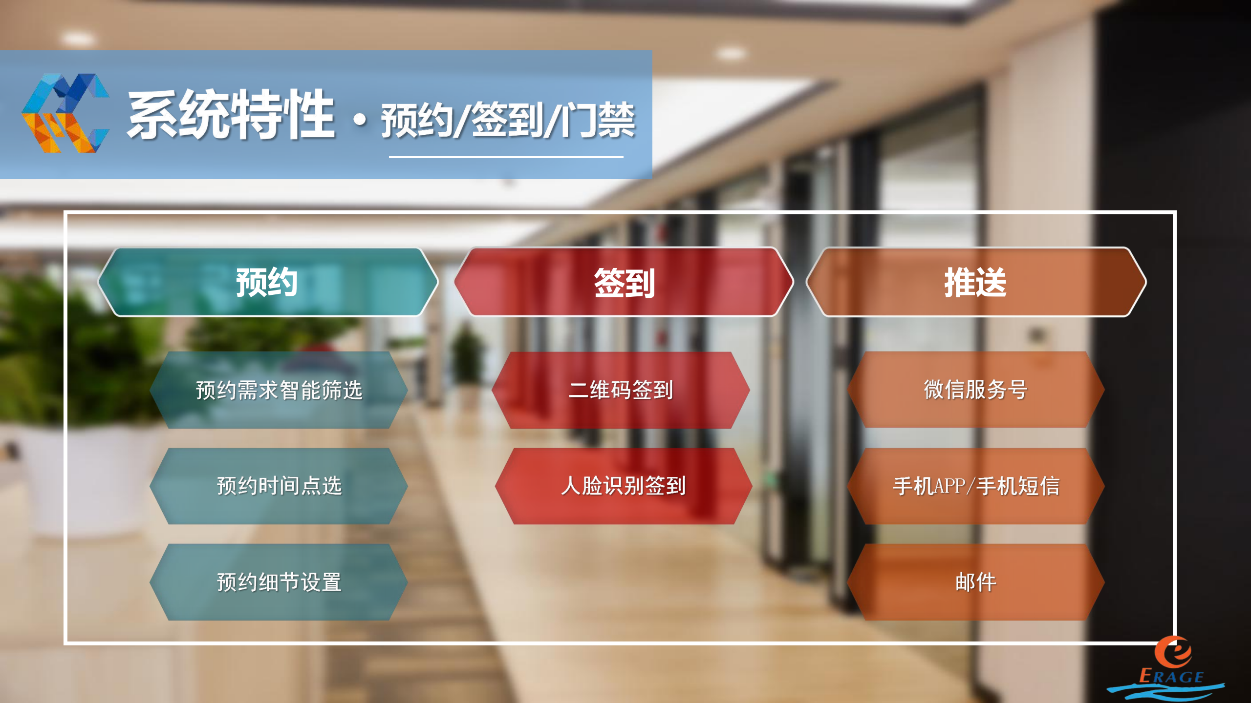 1. 智能会务管理系统 :具有移动预约、本地预约、签到、信息显示、状态显示、文件共享、多媒体显示、信息推送…… ;
