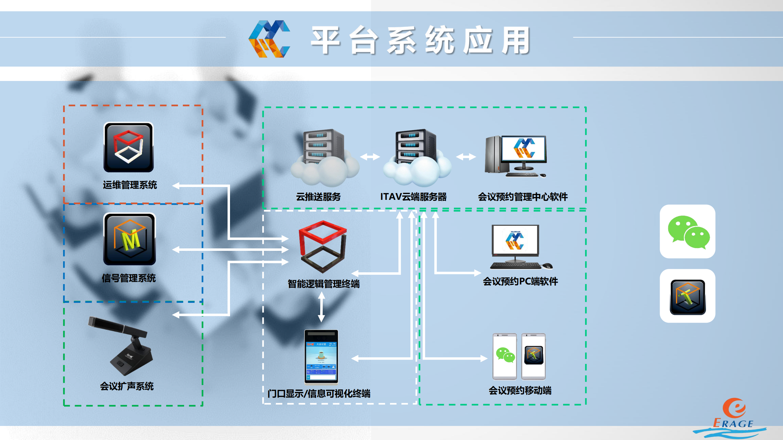 1. 智能会务管理系统 :具有移动预约、本地预约、签到、信息显示、状态显示、文件共享、多媒体显示、信息推送…… ;